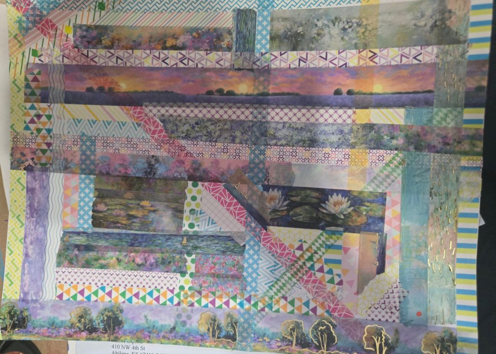 I started with a plain white piece of cardstock and just started randomly applying different designs of washi tape. I like the result. I will most likely cut this into different shapes for use in my journals.